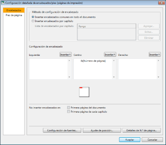 Para obtener más información acerca de cómo configurar el encabezado/pie de página por capítulos, consulte: