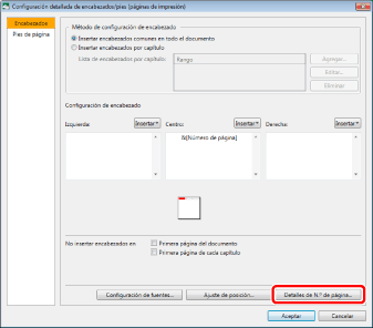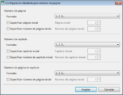 Permite especificar la configuración detallada de los números de página del capítulo.
