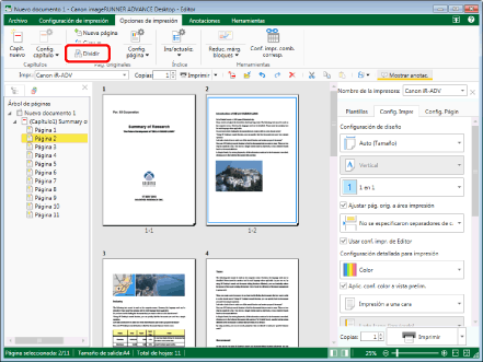 Además, si exporta la página en formato PDF, la página se guarda como otra página dividida.