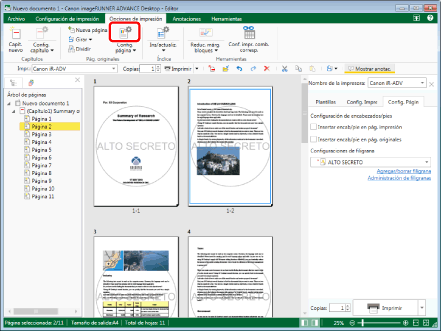 La configuración de filigranas se prioriza siguiendo el orden página > capítulo > documento.
