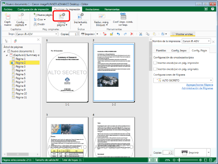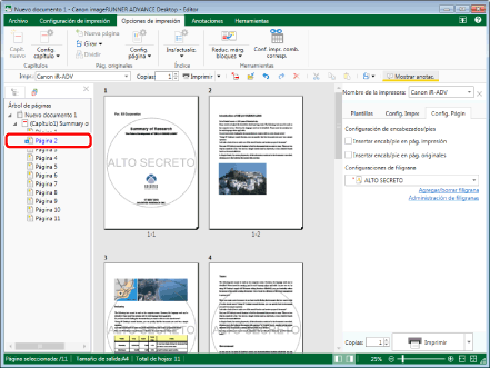 También puede hacer clic con el botón derecho en la página para cambiar los ajustes en la pestaña [Árbol de páginas] de la Ventana de navegación y desmarcar la casilla [No insertar filigranas en páginas seleccionadas] haciendo clic en ella.