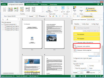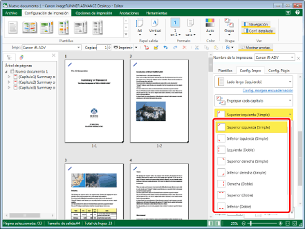 Esta función solo se puede utilizar si selecciona una impresora Canon y la casilla [Usar conf. impr. de Editor] en la pestaña [Config. Impresión] de la Ventana Detalles, el comando de la cinta o el botón de herramienta.