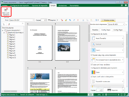 Al restablecer los ajustes de impresión, los ajustes de impresión cambian a los siguientes estados tras aplicar los ajustes [Igual que el original] a la plantilla de ajustes de impresión.