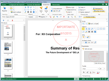 Puede insertar los sellos de texto registrados recientemente, así como los sellos de texto que se registran automáticamente durante la instalación. Para obtener más información, consulte: