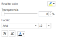 La posición del control deslizante y el valor numérico (%) indican el grado de transparencia de la nota de texto. Para cambiar el grado de transparencia, mueva el control deslizante a la izquierda o a la derecha, o bien escriba un valor numérico. Puede especificar el grado de transparencia en unidades del 1 % utilizando