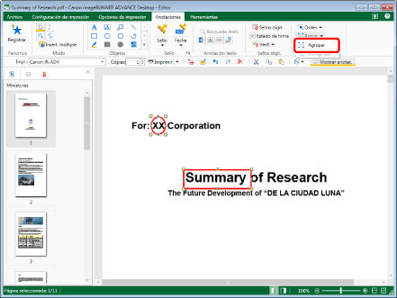 Puede crear grupos de grupos o agrupar un grupo con una sola anotación. Cuando agrupe dos grupos, se desharán sus agrupaciones previas y se reagruparán como un solo grupo.