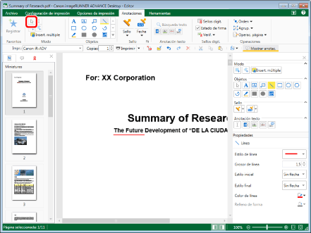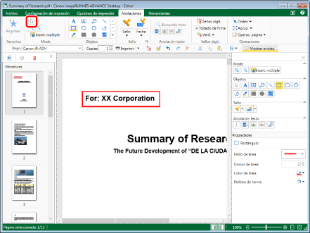 Si lleva a cabo las siguientes operaciones, una parte de la anotación sobresaldrá fuera del área de la página.
