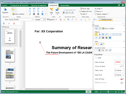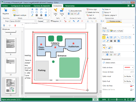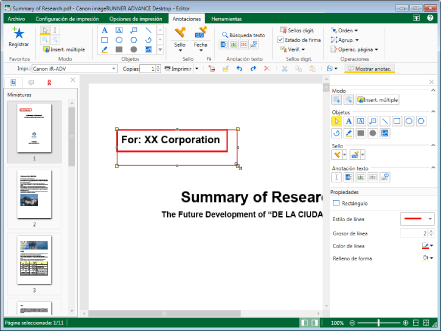 Las áreas de las anotaciones que sobresalen fuera del área de la página no se muestran. Cuando cambie el tamaño de una anotación de esas características, es posible que la parte oculta aparezca en el área de la página.