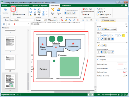 Anotaciones distintas de imágenes y sellos de imagen: arrastrar cualquiera de los indicadores de las esquinas mientras se mantiene pulsada la tecla [Mayús] del teclado