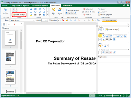Aunque el botón no esté seleccionado, no se puede cancelar la inserción de múltiples anotaciones. Para ello, debe realizar una de las siguientes operaciones.