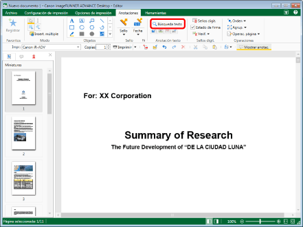 Puede buscar el texto en documentos y anotaciones utilizando Desktop Editor.