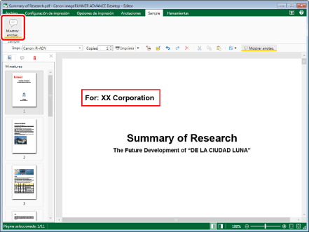 Si se desmarca la casilla [Mostrar diálogo de impresión/envío de fax] en [Configuración del sistema], aparece un mensaje de confirmación si realiza una de las siguientes operaciones con las anotaciones ocultas. Para imprimir anotaciones, haga clic en [Imprimir con anotaciones].