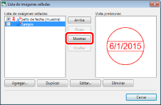 Puede visualizar la lista de imágenes con sello registrada en Desktop Editor. También puede cambiar entre mostrar y ocultar las imágenes con sello registradas.