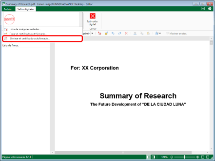 En el cuadro de diálogo [Eliminar el certificado autofirmado] solo aparecen los certificados con firma automática creados en Desktop Editor.