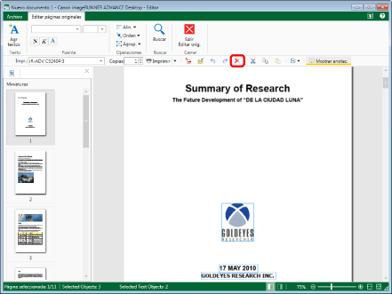 Las imágenes y el texto (objetos) se pueden eliminar en el Modo de edición de páginas originales de Desktop Editor.