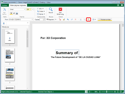 (Selec. todo) que aparece en la barra de herramientas para realizar la misma operación. Si no se muestran los botones de herramienta en la barra de herramientas de Desktop Editor, consulte lo siguiente para visualizarlos.Puede seleccionar múltiples objetos haciendo clic en ellos mientras mantiene pulsada la tecla [Mayús] o la [Ctrl] en el teclado.