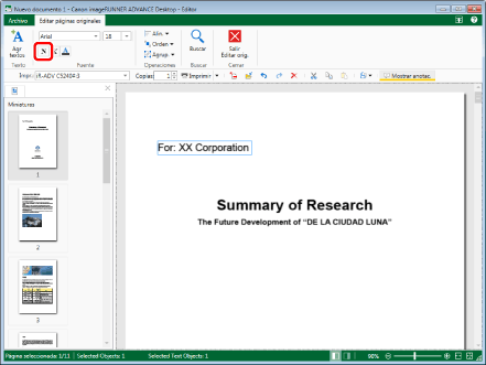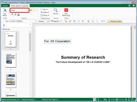 Puede modificar la fuente de varios objetos de texto simultáneamente.