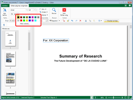 Si desea utilizar un color que no esté disponible en la lista de colores, seleccione [Más colores] para configurar un color que no se encuentre en [Color de fuente] en el cuadro de diálogo [Color].