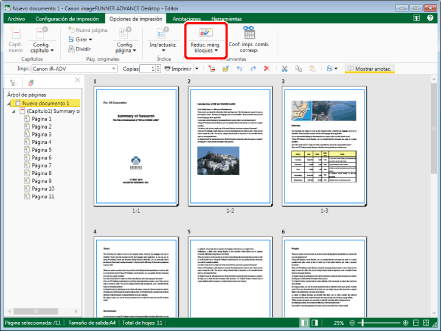 Las páginas en blanco generadas cuando los márgenes sean reducidos se eliminan.