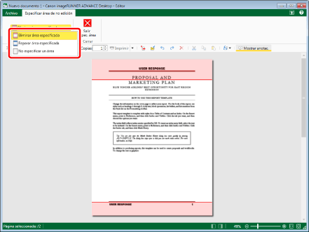 Las áreas en las que no se puede realizar la edición no se pueden establecer por página. Se establecen por documento.