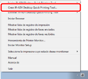 con el botón derecho del ratón (Principal) en Barra de tareas y seleccione [Crear iR-ADV Desktop Quick Printing Tool].