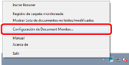 Cuando se especifica una carpeta como destino de monitorización, se monitorizará cuando se esté ejecutando Document Monitor, aunque no se esté ejecutando Desktop Browser, y se mostrará un icono de notificación de documento cuando haya un documento no leído o actualizado en la carpeta.