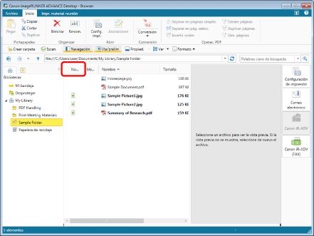 Puede ordenar los documentos no leídos en la Ventana de visualización de la lista de archivos de Desktop Browser.