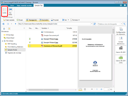 Si se selecciona la casilla de verificación [Marcar documentos no leídos como leídos automáticamente al mostrarse], los documentos no leídos se marcan automáticamente como leídos cuando se realiza una operación en ellos (apertura, impresión, envío por fax, creación de un correo electrónico, etc.).