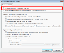 Desmarque la casilla de verificación [Iniciar Printer Monitor al arrancar el ordenador].