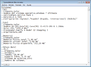 El archivo de texto de la información de entorno obtenida se llama siempre "SystemInfo.txt".