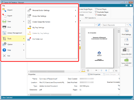 The output bar enables you to configure settings for linkage with applications and devices and use them. You can also use it for specifying shared folders and circulating documents.