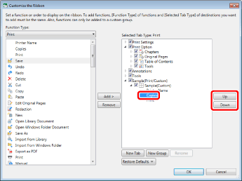 To return the settings of the ribbon to their defaults, click [Restore Defaults] and select [Restore All Tabs to Defaults].