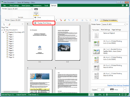 If you are using an IWB document, the print settings stored in the IWB document are used when printing. For details on the print settings, see the following.
