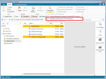 (Conversion) on the ribbon, and select [Set Details and Convert to PDF Document].