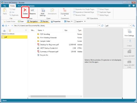 This operation can also be performed with the tool buttons on the toolbar. If tool buttons are not displayed on the toolbar of Desktop Browser, see the following to display them.