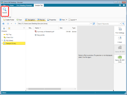 The path of the search target library or folder is displayed in [Search Location] on the Search Screen.