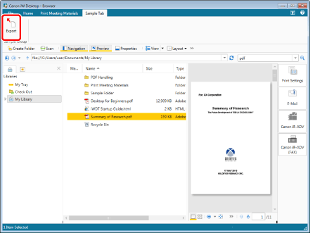 If you drag and drop a folder, documents and data that are in the folder but not displayed in Desktop Browser are also exported.