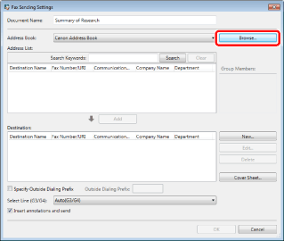 When you enter a keyword in [Search Keywords], the search results are displayed in [Address List]. Clicking [Clear] will clear the search result.