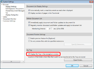 If not configuring the settings of My Tray for circulating documents, and when deselecting the [Display My Tray in the navigation window] check box, My Tray turns out to be not displayed.