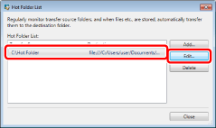 A folder already registered as the transfer source of Hot Folder or My Tray