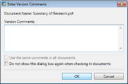 When you enable the version management function for a Document Server Library, the [Enter Version Comments] dialog box is displayed when you register or update a document in the library.