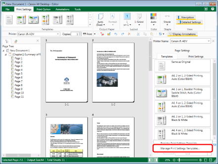 Select the [File] menu > [Settings/Management] > [Manage Print Settings Templates]
