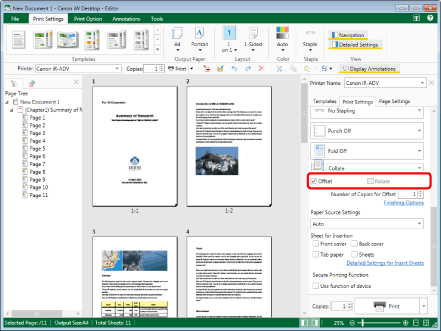 Select the [Offset] or [Rotate] check box in [Detailed Settings for Printing] on the [Print Settings] tab on the Details Window, as necessary.