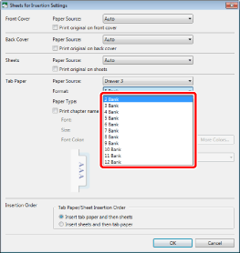 Select [Insert tab paper and then sheets] or [Insert sheets and then tab paper].
