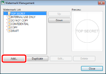 The [Add/Delete Watermark] dialog box displayed by clicking [Add/Delete Watermark] on the [Page Settings] tab on the Details Window