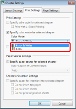 If the Canon printer selected in [Printer] does not support color printing, color mode on a Chapter Basis cannot be specified.