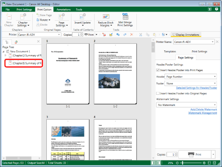 (Chapter) for the chapter to cancel the header/footer settings for on the [Page Tree] tab on the Navigation Window.