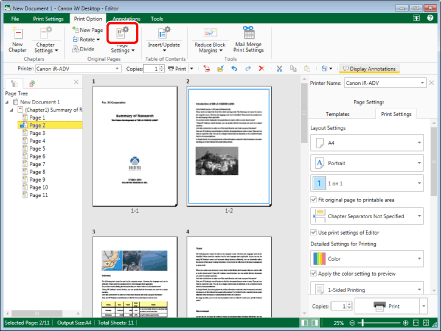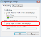 You can also right-click the page to change the settings for on the [Page Tree] tab on the Navigation Window, and select [Clear Settings] from [Paper Source for Original Pages].