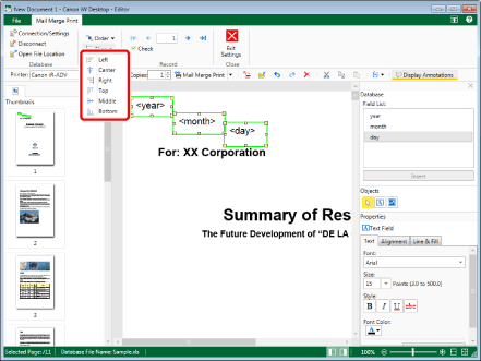 You can align the position of fields you have inserted in the Mail Merge Print Settings Mode of Desktop Editor.