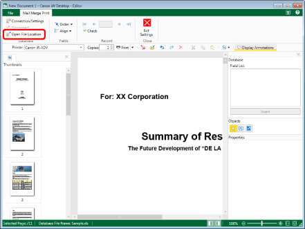 You cannot click [Open File Location] if the database file is not set. For information on how to set a database file, see the following.